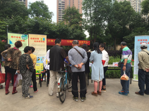 为突出今年科技周“引领创新,共享发展”主题,切实响应国家环保、低碳号召,引导居民进行资源再利用,同时加强社区与居民、居民与居民间的互动,后湖街道惠民苑社区于2016年5月18日上午在惠民居小区大门口开展“环保节能,点滴入生活”的活动。