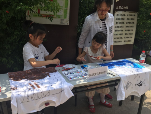 整个活动内容包括环保文化衫制作,由万锦江城幼儿园小朋友现场展示以“保护水资源”为主题的文化衫制作,也有飞机模型、扩音器、节能小台灯等环保科技小制作品展示,还有垃圾分类宣传,主要以海报图文形式展示生活中的点滴环保,此外旧物置换、旧物利用的环保方式也得到了不少居民朋友的欢迎及认可。