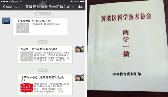 制发一本口袋书。区科协将党章党规、重要讲话、党务基本知识和工作条例等内容印制成《黄陂区科学技术协会“两学一做”学习教育资料汇编》,以“口袋书”的形式发放给每一位党务工作者,方便日常随时学习翻看。