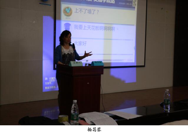 杨昌蓉处长致辞,她对在场与会人员表示热烈欢迎,并表示将组织学校学生积极参赛,向大赛输送优秀人才。