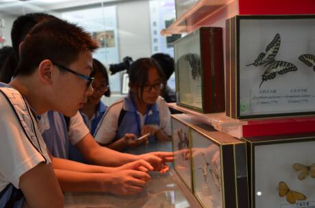 颜色绚丽的蝴蝶,展翅翱翔的草原雕,灵动活动的猕猴,这些栩栩如标本就在华中农业大学博物馆内。此次夏令营活动第二站,同学们来到华中农业大学博物馆,这里是华中地区最大的标本博物馆,收藏各类动植物类、土壤和地质类标本近30万份,同时也是洪山区科普教育基地。昆虫、畜禽、鱼类、植物、土壤地质及特色展厅等6个展厅,引发了学生对大自然好奇,激发一种探索精神。