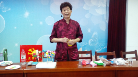 面塑传承人高师傅,给同学们讲解了我国面塑的发展历史和面塑的工具及面塑的基本要领,然后做示范教学,只见橡皮泥在老师手中几经捏、搓、揉、掀,用小竹刀灵巧地点、切、刻、划、塑成身、手、头面,顷刻之间,栩栩如生的艺术形象便脱手而成。同学们惊奇的目瞪口呆!高老师的表演极大的调动了大家对学习捏面人的兴趣和热情。经过一个半小时,在高老师的指导下,同学们自己动手捏出的面人作品完成了,大家兴高采烈地拿着自己的作品开心合影。