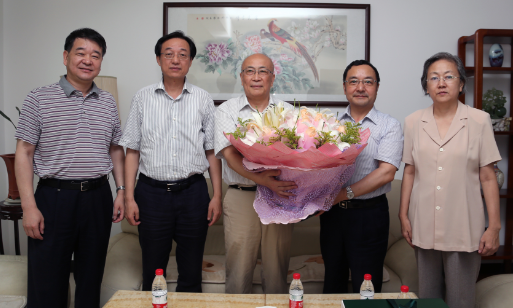 市科协网讯 (记者 邓婉君 通讯员 陶虹)8月6日,武汉市政协副主席谭仁杰,湖北(武汉)院士中心秘书长、市科协党组书记桑建平一行来到华中科技大学,为新晋院士李德群71岁送生日祝福。