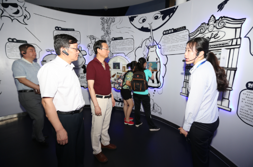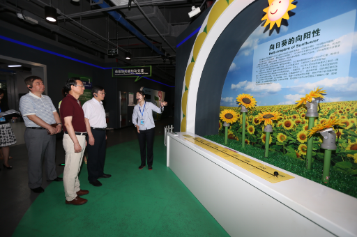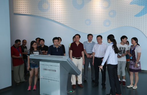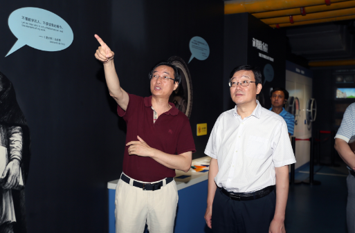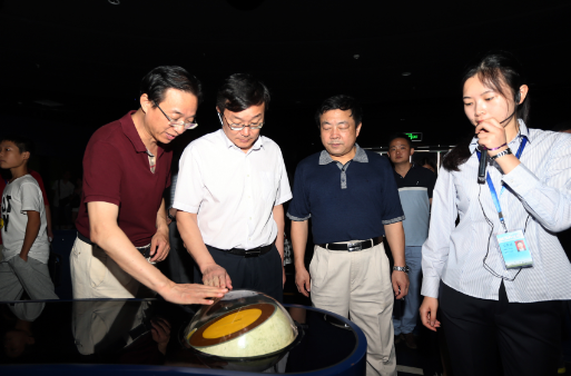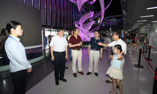 叶贤林一行参观了“探索与发现”、“地球与生命”、“科技与生活”、“儿童乐园”等常设展厅以及4D影院、球幕影院,详细了解了新馆内容建设、运营管理、展品设计及布展等工作情况。
