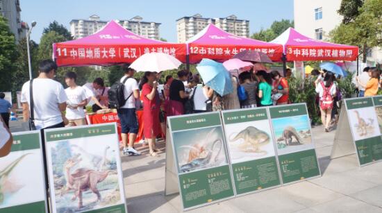 华中农业大学博物馆和华中师范大学生物标本馆联合展陈的金丝猴、鬣羚、孔雀、浣熊等动物标本及几百只丽的蝴蝶标本吸引了许多观众的目光,在场专家们还向观众详细介绍了各种动物的生活习性,倡导大家要保护动物。中科院水生所白鱀豚馆通过展品与宣传册让市民了解白鳍豚的同时也重视起拯救水生动物的重要意义,活动中不少观众主动与专家交流了白鱀豚知识。中南财经政法大学货币金融历史博物馆的中国货币发展史展板,中南民族大学民族学博物馆的60块少数民族文化科普展板依次排开,共同搭建了一个临时科普长廊。中国地质大学逸夫博物馆带来了地质类展品,还有新型3D立体展板,观众通过佩戴特殊眼镜可以直观远古时期恐龙的生活状态。中科院植物园带来了许多植物为现场增添了一抹绿色,武汉康思农蜜蜂博物馆带来了蜂蜜制作模具展品,武汉东湖海洋世界向观众发放了各类科普读物,国家电网公司交流特高压实验基地的VR虚拟现实场景展示,吸引了观众排队体验。武汉大学的考古新技术展示为大家揭开了考古的神秘面纱。活动现场洪山区科协对“科普中国”微信公众号进行了宣传推广。众多市民积极关注“科普中国”微信公众号,现场加关注200多人,推进了“互联网+科普”走进社会公众。