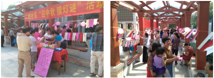 中秋节是中国盛大的传统节日,为弘扬中华民族文化,丰富社区居民的精神文化生活,9月14日上午,二炮社区举办了“迎中秋、猜灯谜”活动,与社区居民共度中秋佳节。活动现场百余条经典谜语悬挂在社区休闲长廊内,谜面内容丰富,有猜字谜、成语、地名、人名、历史、动物、植物、汽车等,融知识性、趣味性为一体,妙趣横生。供社区居民竞猜,吸引了不少居民驻足参与,大家认真琢磨,你一言、我一语地互相提示和讨论,绞尽脑汁地思考着灯谜的答案。一片喜庆热闹景象。猜谜正确者,领取到那展示自己智慧的奖品,笑逐颜开,猜谜错误者,则仍不泄气,回头再来...., 同时在活动现场向过往居民群众发放安全手册和居民健康知识科普读本。此次活动奖品丰富,热闹非凡,不仅拉近了社区与居民之间的距离,还普及了一些生活中小常识和科普知识。
