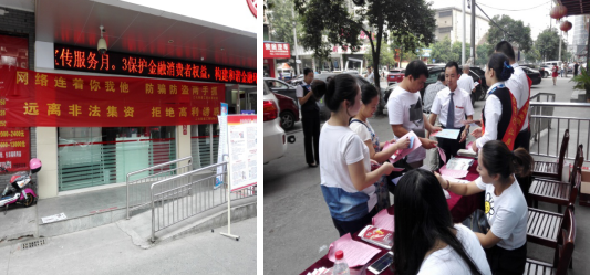 为进一步提高增强广大民众对非法集资的防范意识和识别能力,从源头上有效遏制非法集资。长建社区于2016年9月23日组织社区和银行的工作人员开展“拒绝高利诱惑,远离非法集资“宣传服务活动,活动当天,在街道经协科阮科长的带领指挥下,工作人员通过张贴宣传海报、发放宣传单等形式向居民群众宣传非法集资手段、危害及预防等知识,活动取得很好的成果,让大家更深层次的了解到非法集资手法的多变性和危害性。