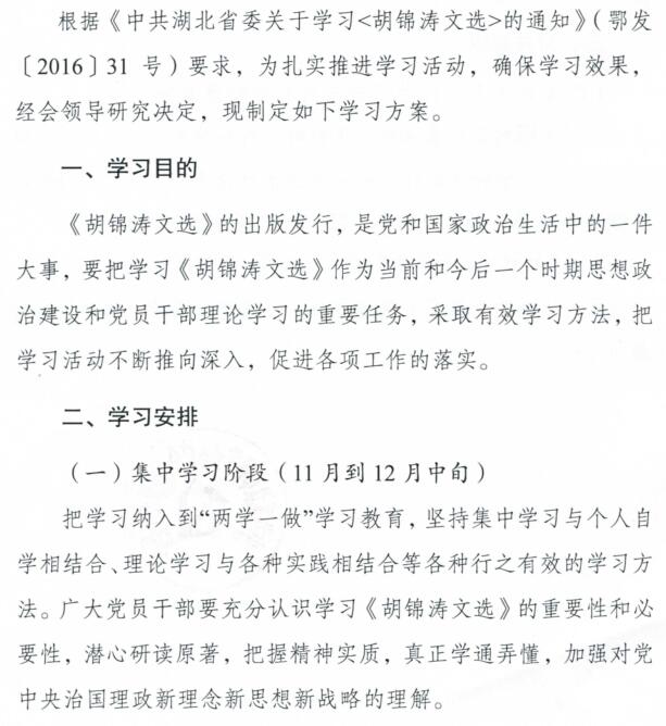 市科协关于学习《胡锦涛文选》的工作方案