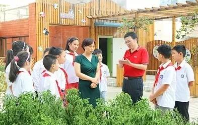 报告会后,江教授参观了学校的“行知农场”,看着农场里长得正茂盛的辣椒、扁豆等农作物,江教授仔细地为同学们讲解这些蔬菜的生长规律和种植方法,并对农场其他蔬果的种植进行建议。看着校园农场,江教授很欣喜:“这是我第一次见到小学校园里有这么成熟的农场,孩子们可以在此观察到蔬菜从播种到结果的全过程,对城市孩子来说太难得。”