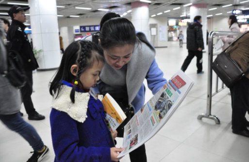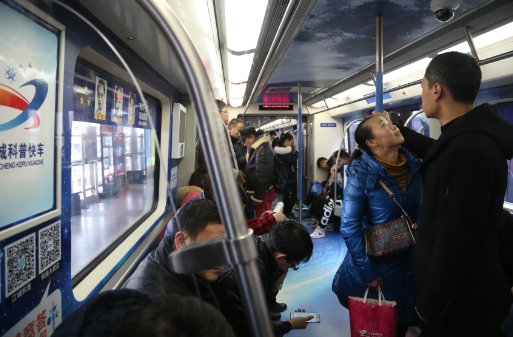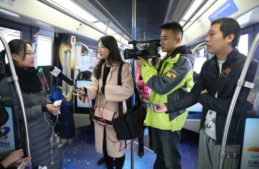 沿途学校密布的江城地铁1号线,是武汉最早的一条轨道交通线,也是中西部地区第一条轨道交通线路,贯穿东西湖、硚口、江汉、江岸、黄陂五区,由东西湖区东吴大道站至黄陂区汉口北站,共设29站。科普快车的正式运营,受到市民的“五星好评”。李洋洋是个热爱直播的“小网红”,她在自己的直播APP上全程直播了启动仪式,她说,平时大家坐地铁很无聊,只能看手机,现在大家可以在乘地铁同时学到科普知识,这很有趣,也很充实;李大爷“潮范儿”十足,他带着墨镜走进车厢,看着全新的“航空航天梦”车厢不住点头,“这车厢搞得不错”……