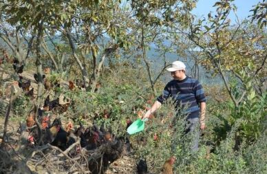 刘水兵介绍,合作社地处徐古有名的将军山脚下,这里山清水秀,物产丰富,特别是名贵的中草药材尤为较多......他琢磨着,这些名贵药材能保证人们强身健体,健康长寿。那能不能用到动物身上呢?爱"扳命"的刘水兵说干就干。他在茶树林、板栗林下分别散养2000、3000只土鸡。最初他利用徐古废弃的蘑菇边角料打碎做鸡饲料,给鸡吃了后,发现鸡的体力增强不说,还增强免疫力,很少得病,于是他研制出独特的鸡饲料,其中不仅掺有剁碎的蘑菇,还有鱼头鱼骨,可增加了鸡子的钙质。