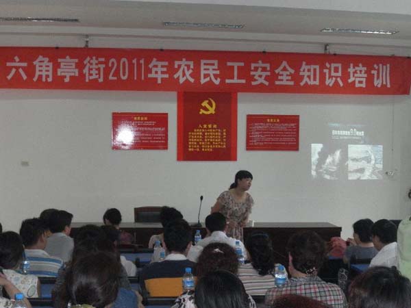 9月14日上午,六角亭街科协、劳服所在区人力资源培训中心的大力支持下,组织六角辖区100多名农民工,特邀请到湖北省消防协会宣讲中心陈老师,在街四楼会议室为农民工讲授安全知识培训课。