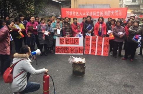 近日,万松街妙墩社区在移动宿舍、荣泰小区、妙墩路18号至28号院落组织了三场消防安全演练,辖区居民不仅积极参与活动,更发挥人民当家作主的精神——2日下午两点半,社区各网格门栋长号召ABCD栋及邮电小区的居民朋友,组织了第四网格消防演习。活动中,门栋长杨世英全程主持,宣讲消防常识和平时用火、用电注意事项,其他门栋长及热心居民在一旁维护秩序、组织人员签到、发放有奖问答物品。在社区消防协管员陆瑞嵘讲解完消防器材的使用,及火灾逃生演练、正确使用灭火器后,全体居民朋友在杨世英师傅的号召下,齐声背诵了文明建设的相关知识。
