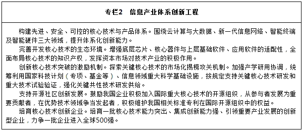 全面助力创新型国家建设。聚焦构筑国家先发优势,发挥信息化引领创新的先导作用,全面推进技术创新、产业创新、业态创新、产品创新、市场创新和管理创新。推动信息技术与制造、能源、材料、生物等技术融合渗透,催生新技术,打造新业态。构建跨行业、跨区域、跨部门的创新网络,建立线上线下结合的开放式创新服务载体,整合利用创新资源,增强创新要素集聚效应。