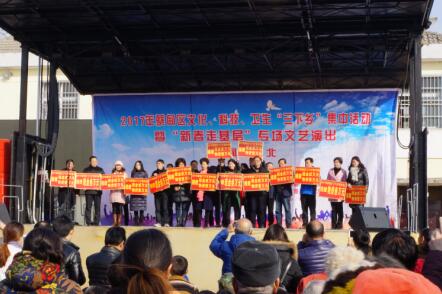 活动现场,歌舞、戏曲、小品、杂技、魔术等文艺表演吸引了当地群众驻足观看;农机具的优惠展销、农业咨询、种子推广、健康宣传、药品发放、春联书写等推动了三下乡的科普宣传活动的高潮。