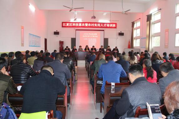 为深入解读农业供给侧改革与农业转型升级要点及有关政策,进一步加快农村实用技术推广普及应用,促进农民创业,促进农业增效,农村增绿,由区科协牵头,联合区委组织部、区科经局、区农委、区妇联、乌龙泉街等单位组织的“百万市民学科学”-2017年江夏区春季科技惠农暨农村实用人才培训班于2月28日上午在江夏区农村实用人才培训中心正式开班。来自全区12个涉农街的120余名学员参加培训,他们中有的是种植(养殖)专业大户、科技示范户,有的是家庭农场主、科普示范基地负责人、农业产业化龙头企业负责人,有的是巾帼致富能手。