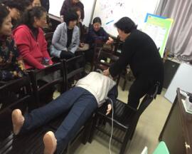 为进一步丰富居民的健康知识和急救知识,切实提高大家的自我保健技能。2月28日,黎明社区特邀请同济医科大学讲师为居民开展急救知识讲座。老师通过PPT展示,系统地讲解了晕厥、气道异物梗阻、癫痫、冠心病、心绞痛、脑血栓、脑梗塞等应急救护知识。利用人体模型将心肺复苏和人工呼吸的整个流程进行了分解示范,将每个步骤的具体操作手法和注意事项对参训人员进行了耐心细致地讲解,一面示范,一面讲解,还为大家解答各种疑惑,使讲解更生动更直观。参加培训的工作人员轮番上台在许老师的讲解下认真地作了练习。