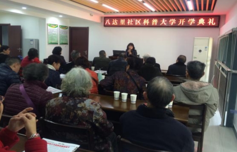 首先由社区科普大学的校长社区书记肖汉梅宣布社区科普大学开班了。她说:在大家特别是老年朋友的共同努力下,社区成立了科普大学,科普大学不仅可以更直观的受教育,学习的知识也更系统、更全面,极大地丰富老年人的生活、陶冶情操、促进健康、增强了老年人自我保健能力,使老年人更好地享受到身心健康的乐趣,更好地做到老有所学、老有所用、老有所乐。要办好科普大学离不开各位的支持,为此,希望学员们认真参加授课学习,不断增进知识,更好地为八达社区科普教育作贡献。学员们纷纷表示定要遵守各项规章制度,努力学习。开学典礼后,新华医院教授李凤琴为社区科普大学全体学员作了生动授课。