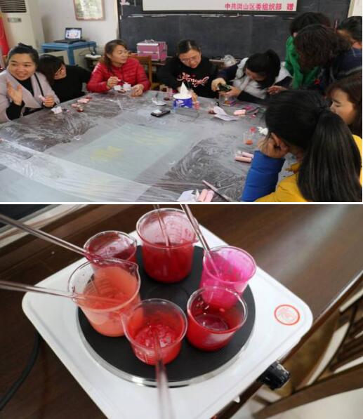 3月7日在社区会议室举办此次DIY口红制作活动, 活动一开始,武南铁路社区计生专干刘瑛对制作口红的原料作了简单介绍,然后给大家讲解制作的步骤,一边讲一边从她的“百宝箱”里拿出工具和各种手工材料一步步制作演示。大家看着刘瑛的演示,都迫不及待地动手操作起来,不一会儿,一个个五颜六色的手工口红就出现在大家手上,看着自己亲手做成的美丽口红,大家脸上都洋溢着开心的笑容。