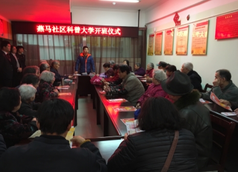 2017年3月10日上午,前进街燕马社区科普大学开班举行开班仪式,社区书记徐毅就举办社区科普大学的意义及作用作了讲话,社区科普大学通过邀请专业教师给社区居民上课,普及科学知识,倡导科学方法,抵制封建迷信,在社区中营造弘扬科学精神的氛围。主要围绕卫生健康、科学生活、文化艺术、节能环保、安全避险等热点话题开班授课,引导和帮助社区居民建立起科学、文明、健康的生产和生活方式。