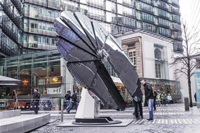 它的设计灵感来源于向日葵,采用双轴全天候太阳跟踪系统,太阳能板始终会跟着太阳走。