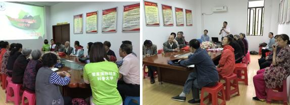 鲁老师以一首葫芦丝吹奏的《映山红》引入,让居民们从欣赏歌曲的曲调来谈谈听后的感受,除此之外,他从对音乐欣赏的心理分析,详细阐明了音乐对调节人的行为,影响人的情绪、减轻人的压力、改变环境氛围等确实起到不可代替的作用。
