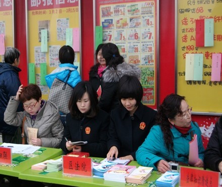 市科协网讯 阴雨绵绵,寒风瑟瑟。寒冽的春天无法阻挡“学雷锋”志愿者的热情和特困小组帮扶队的行动。3月5日上午,在区、街道有关部门组织下银海雅苑社区科普工作志愿者参加了“百万家庭学法律 户户平安促和谐”宣传活动,为了将此次宣传活动开展的更专业,我社区特别邀请来了洪山区法院的2位法官,为广大的妇女群众进行法律方面的咨询。现场我们准备了关于《婚姻法》、《财产继承法》、《维权指南》等多种关于保护女性的法律知识宣传,同时还开展了法律知识谜语有奖猜活动,不少路过的老百姓也纷纷加入到猜谜语当中。活动共计有28名从事妇联工作的女同胞,发放宣传资料200余份,大家都希望通过此次学雷锋活动能为更多为女性宣传如何保护自己的法律知识。
