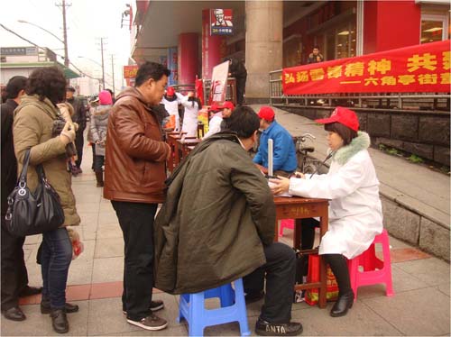 市科协网讯 3月5日是“学雷锋日”。上午九时,六角亭街组织民意社区科普志愿者共40余人在中山大道肯德基门前开展了“弘扬雷锋精神,志愿者在行动”活动。