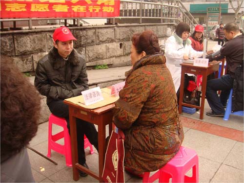 活动现场,志愿者们免费为市民提供了健康咨询、测量血压、法律咨询及女性维权等服务项目,得到广大市民的热情响应,参加活动的市民络绎不绝,有的服务项目前都排起了“长龙”。