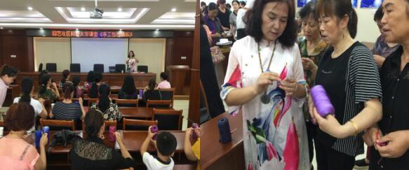 园艺社区科普大学课堂第三节课是《手工包包编织》,居民们都对学编织包包非常感兴趣,老师还没来大家都早早来到教室了,我们为每位前来上课的居民提供一个钩针、2轴线、一个网格。老师先边做示范边把大致的编织手法教给大家,讲完之后然后下来一个个跟居民解疑答惑,每位居民都学的很认真,到了下课时间都不肯离开,大家都要求再加一节编织包包课,我们把老师的编织成果发到了群里,供大家参考,让大家在家里继续完成剩下的编织任务。这堂课大家都上的很认真,课堂效果很好。
