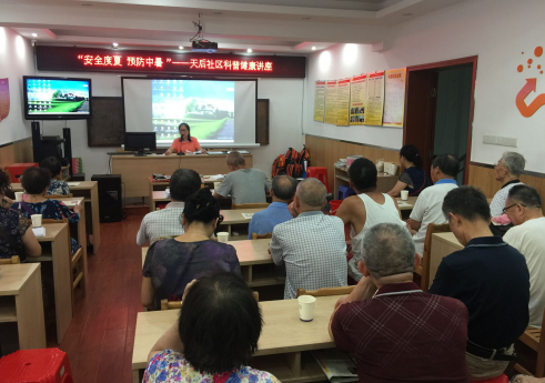为了增强辖区居民的自我保健意识,树立科学健康的生活方式,防暑降温安全度夏,营造“健康平安”的氛围。7月7日下午3点,民意街天后社区在社区科普大学教室,邀请社区科普大学喻老师为大家上了一堂关于夏季防暑降温的小常识以及夏季应急知识讲座,40余名学员参加。