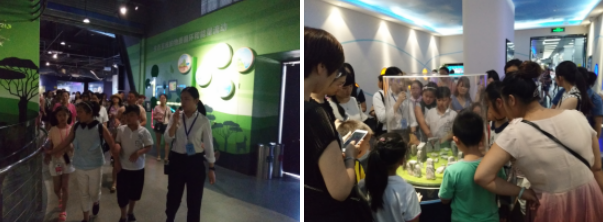 在讲解员的带领下,学员及青少年带着兴奋和好奇有序地参观了宇宙展厅、生命展厅、水展厅等八大展厅。进入生命展厅,对生命和生态有了新的认知,倡导大家要保护环境,爱护我们的家园;走进宇宙、交通、数字和信息展厅,讲解员给讲解了宇宙的起源与发展、现代交通与智能生活、数学的奥妙等等。
