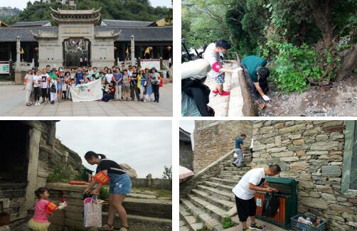 参与活动的志愿者们统一佩戴手套和红袖章、手持垃圾袋,从木兰山胜景广场出发,三个一伙,五个一群,分组在古庙区沿线路捡拾垃圾,他(她)们不时的捡起树林里丢弃的包装袋、台阶上的烟盒,丢弃在墙角旮旯里的塑料瓶、废纸等各种生活垃圾,直至每个志愿者的手中垃圾袋装满。