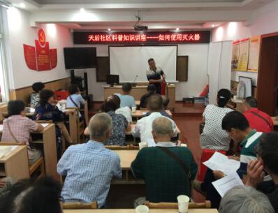 为普及消防安全知识,增强社区居民的消防安全意识。9月14日上午在天后社区二楼科普教室举办了一场“天后社区科普知识讲座——如何使用灭火器”,邀请社区安全员为社区居民和社区科普大学志愿者们进行消防知识培训。社区安全员彭师傅为大家讲解了火灾的隐患,火灾现场逃生和火灾时自防自救的能力等知识、讲述了近几年来发生的几起重大火灾事故,重点讲述了发生在天一后街56号5楼的电线老化引起的火灾事故现场,因为安全员使用灭火器扑救及时,避免了人员伤亡及财产损失的案列。通过讲述大家身边的真实案例向居民们阐述了火灾发生后的严重后果及发生火灾时,利用身边消防器材自救与逃生知识,并对社区内消防设施、安全出口、疏散通道等几方面进行了深入的讲解。讲座中,彭师傅现场模拟了灭火器的正确使用方法,并邀请在座的志愿者上台,手把手亲自教会大家正确使用灭火器材。此次讲座敲响消防安全的警钟,提醒在场的每位居民,我们的身边时刻存在着安全隐患,比如:煤气泄漏、电线老化、漏电等等,当这些意想不到的灾难发生时,我们应如何进行自救,如何在保护自己生命的同时又能将损失降到最低。