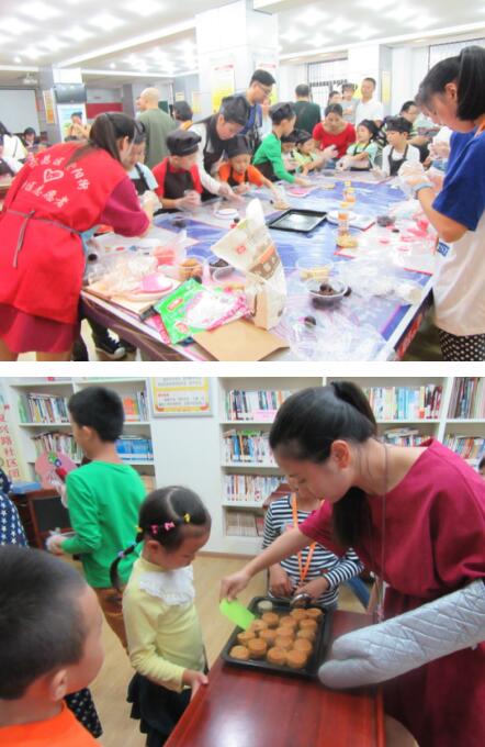 在社区活动室内,各种馅料和面团、模具摆上桌台时,小朋友们跃跃欲试。社区的烘焙能人彭非老师,取出事先发好的面团,娴熟地揉圆,将面团压平,再将融合了蛋黄、豆沙、莲蓉等原料的馅料包入面团中,慢慢收好口子,再揉圆。随后,将面团放入模具中,压模后,一个印有花样的月饼就做了出来。志愿者们手把手地教小朋友们制作月饼,大家分工配合,有的团馅料,有的捏面团,有的压花,有的烘烤,不一会整个屋里就飘起了浓浓的香气。社区志愿者用烤箱开始烘烤月饼,小朋友都围在烤箱附近“闻香”,急不可耐的等着品尝,大家吃着自己制作的月饼,高兴得合不拢嘴。新华社小记者团报道了此次活动的盛况。