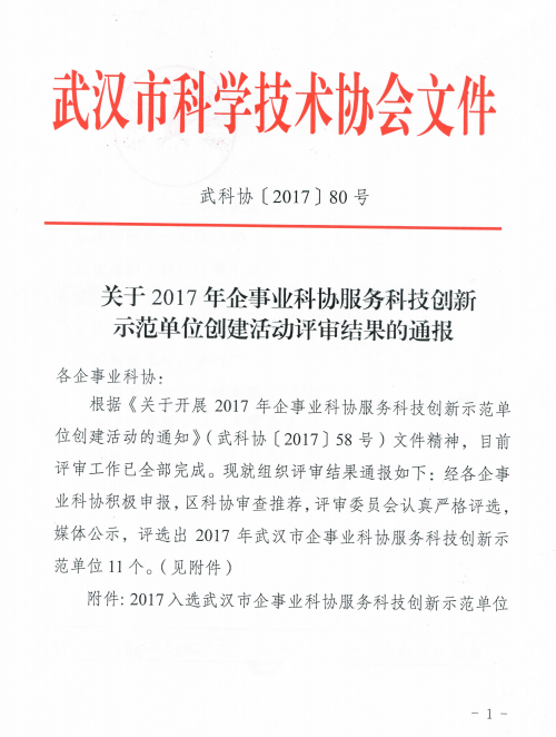 关于2017年企事业科协服务科技创新示范单位创建活动评审结果的通报
