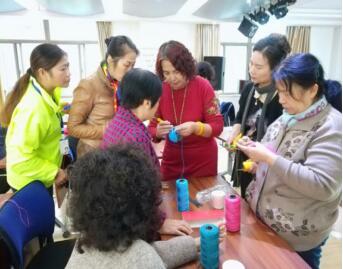 10月20日上午,狮城名居社区特邀洪山区科普大学陈萍老师做客社区科普大学,为辖区下岗妇女和退休老妈妈们传授手工编织的包包、帽子,杯套等技能,陈老师针对活动中年龄偏大和掌握较慢的居民,都是手把手地进行耐心指导。一位曾经得过抑郁症的患者江师傅也主动融入到活动中与大伙相互交流、相互帮助,精神面貌得到了明显提升。整个课程形成了友好的互助氛围和浓烈的学习氛围,活动持续了近两个小时,最后大家纷纷表示,这样的活动很有意思,希望在今后能够多组织一些这样的手工编织活动,既动脑又动手。