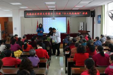 活动中陈老师用预先准备好了五颜六色的原材料毛线一步一步地指导居民勾线,不厌其烦地讲解,耐心地教在场的每一位居民。两个小时大家聚精会神,不一会便将一个个毛线球变成了手工制作的半成品,大家边制作边相互交流、切磋,碰到问题,老师现场解惑答疑,给予正确指导,散场后,大家把半成品拿到家里,继续完成手工制作。