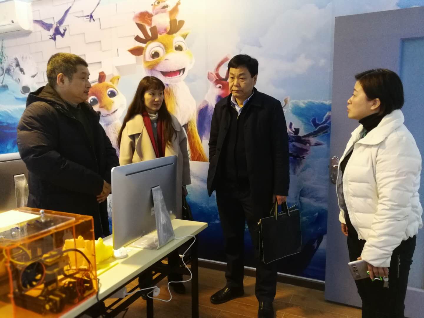 图为:熊少明、安群慧参观报社联合打造,设于报社三楼的武汉3D科普教育培训基地。