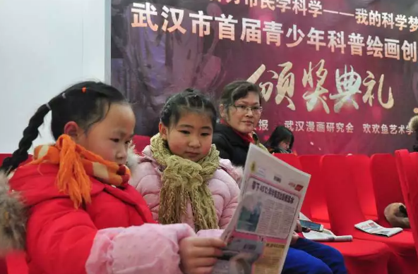 仪式现场,武汉科技报社社长兼总编辑陈海涛致辞。他表示,这次联合武汉市漫画研究会开展青少年科普绘画活动,是提升青少年综合素质的一项重要举措,为广大青少年参加科技创新构建了新的载体,提供了新的舞台,并鼓励青少年创作出更多的优秀作品。武汉漫画研究会秘书长蒋勇告诉记者,用绘画展示科普非常有意义,雅俗共赏。孩子们把自己理解的科普常识、对未来科技的憧憬等,用绘画的形式形象地展现出来,既锻炼了绘画能力,也提升了科学素质。蒋勇说,武汉漫画研究会非常愿意吸收年轻血液,来继承和发展传统漫画,如讽刺漫画、幽默漫画等,传统漫画与系列卡通画不同,通过一副简单的图像就能让人会心一笑、或者阐明一个现象、道理。这与此次科普绘画大赛的初衷与效果不谋而合。希望大赛继续办下去,办得更好。