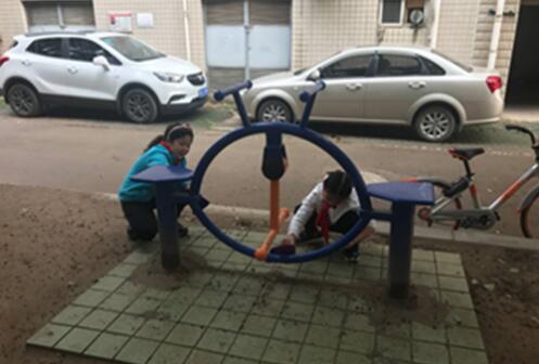 在社区志愿者的带领下,小小志愿者们来到社区休闲娱乐区域,对体育健身器材进行了清洗擦拭。随后,大家又分成若干小组,围绕“垃圾分类方法”进行了实践活动。