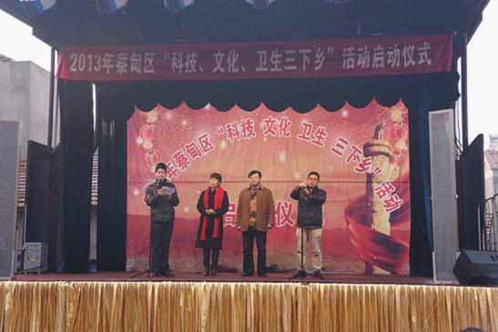 市科协网讯 2013年元月18日上午,在蔡甸区委宣传部精心组织下,蔡甸区科协、区科技局、区卫生局、区文体局、区农业局、区计生委等10多家区直机关单位来到蔡甸区桐湖办事处综合文化广场,在这里隆重举行科技、文化、卫生“三下乡”活动启动仪式。