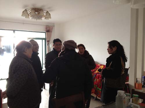 市科协网讯 1月24日,洪山区科协主席董祖恩、区总工会常务副主席段小红及驻青菱街建阳村“三万”工作组一起开展了2013年元旦春节“结对帮扶”走访慰问活动,在建阳村村干部的陪同下,共同慰问了该村20户困难村民家庭,并每户送上500元的慰问金,送去组织的关怀,祝他们过一个快乐祥和的春节。