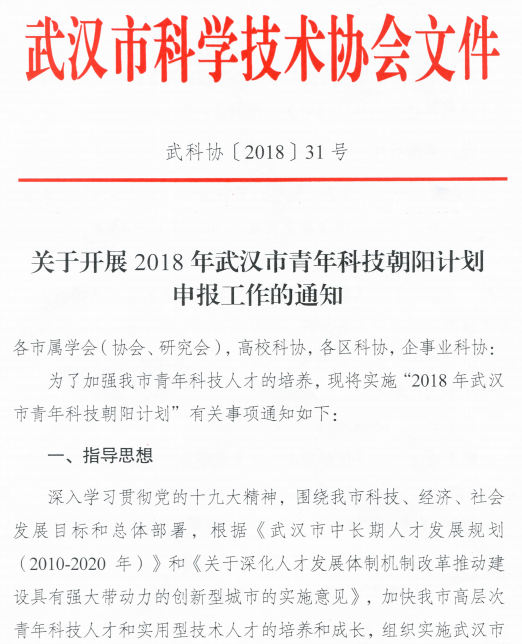 附件: 1、武汉市青年科技朝阳计划管理办法 2、关于申报朝阳计划项目的说明 3、“朝阳计划”申报有关表格