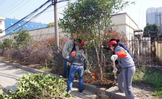 乍暖还寒的时候,种植现场一派热火朝天的景象。挥锹挖坑、扶直苗木、培土浇水,社区志愿者们亲手种下一株株树苗。众人齐心效率高,转眼间,桂花树错落有致迎风挺立,绽放生机,为社区增添一份绿意。