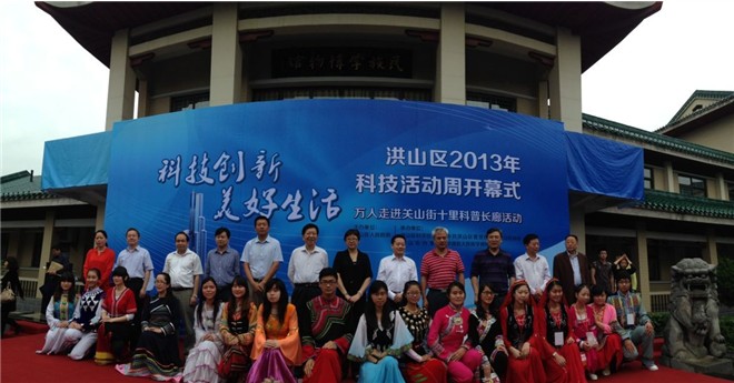 “科技创新、美好生活”——5月18日上午,由洪山区政府主办、区科技局、、区委宣传部、、区科协和关山街办事处、中南民族大学博物馆联合举行的“洪山区2013年科技活动周”开幕式在中南民族大学民族学博物馆隆重举行。市科技局、中南民族大学、洪山区四大家领导和各承办单位负责人出席了开幕式。全区科普联席会成员单位、各街乡科技专家、社区居民代表、学生代表及科普志愿者近400人参加开幕式现场活动。
