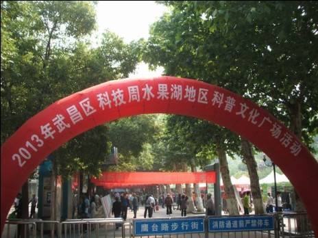 同一天,由水果湖街科协举办的2013年武昌水果湖地区科普文化广场活动在水果湖步行街举行。中南街举办了科技周的开幕式暨科技馆的落成典礼。杨园街启动了环保低碳生活宣传教育。科技活动周期间,将陆续推出科普影视、科普巡展、专家院士进校园进社区等36场科普大餐。
