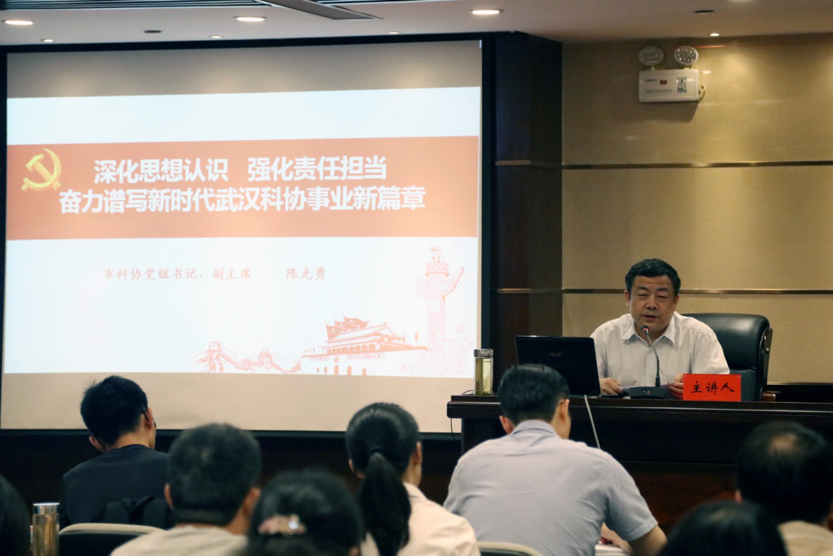 市科协网讯(见习记者 张宇驰)6月28日,为纪念建党97周年,开展了以“牢记嘱托,不忘初心”为主题的党组书记讲党课活动。活动由市科协党组书记、副主席陈光勇为科协系统党员干部做了题为《深化思想认识,强化责任担当,奋力谱写新时代武汉科协事业新篇章》党课讲授。科协机关全体干部职工和直属单位党员、入党积极分子代表参加了活动。科协党组成员、副主席张若光主持本次活动。