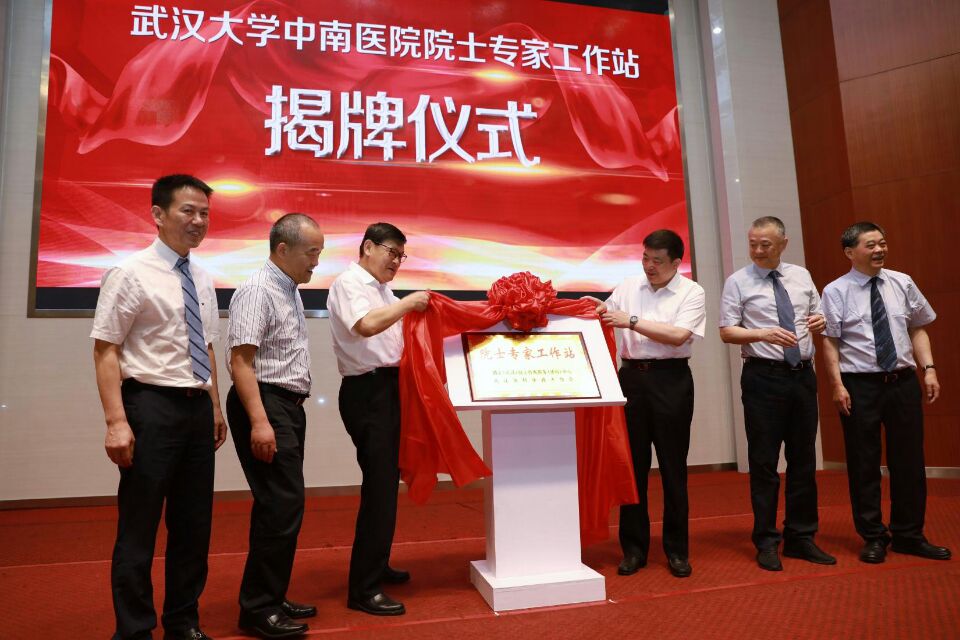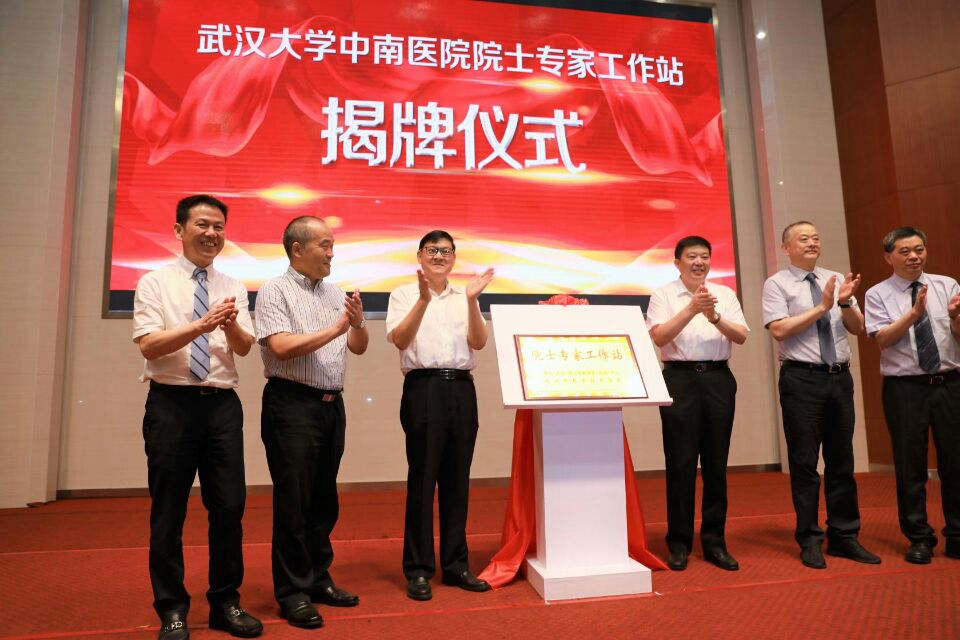 随后中国工程院党组书记、院长李晓红,武汉市委副书记、代市长周先旺,武汉大学党委副书记、校长窦贤康,中国工程院院士孙颖浩,中国工程院院士李兆申和武汉大学中南医院院长王行环一起为武汉大学中南医院院士专家工作站揭牌。