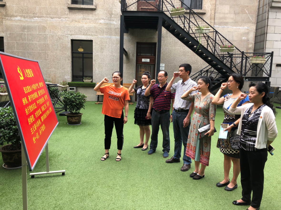 市科协网讯 7月3日上午,武汉市科技创新创服中心党支部组织“七一”专题“支部主题党日”活动,赴市直机关党员干部教育基地——江汉关博物馆开展学习红色教育。全体党员胸带党徽,在博物馆庄严列队,面向党旗重温入党誓词。